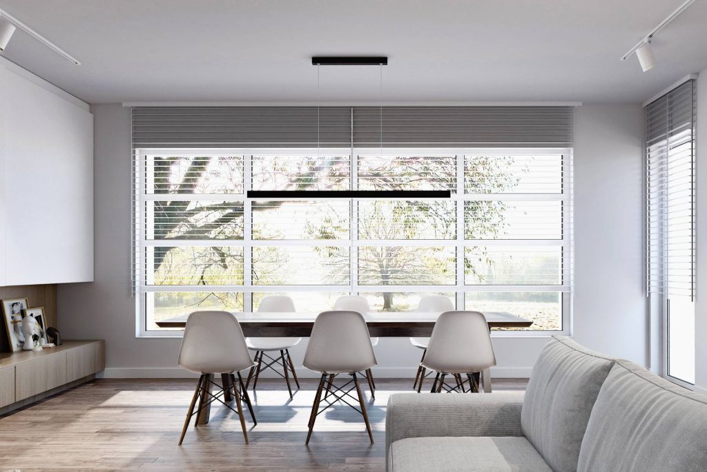 Dolny poziom nieruchomości został zaprojektowany w stylu skandynawskim.